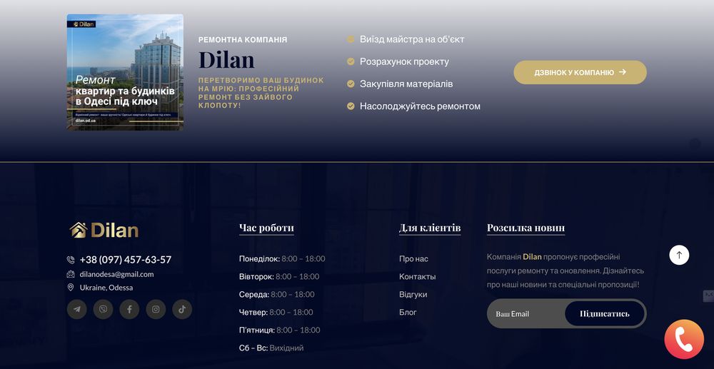 Кейс: создание корпоративного сайта ремонтной компаний dilan.od.ua